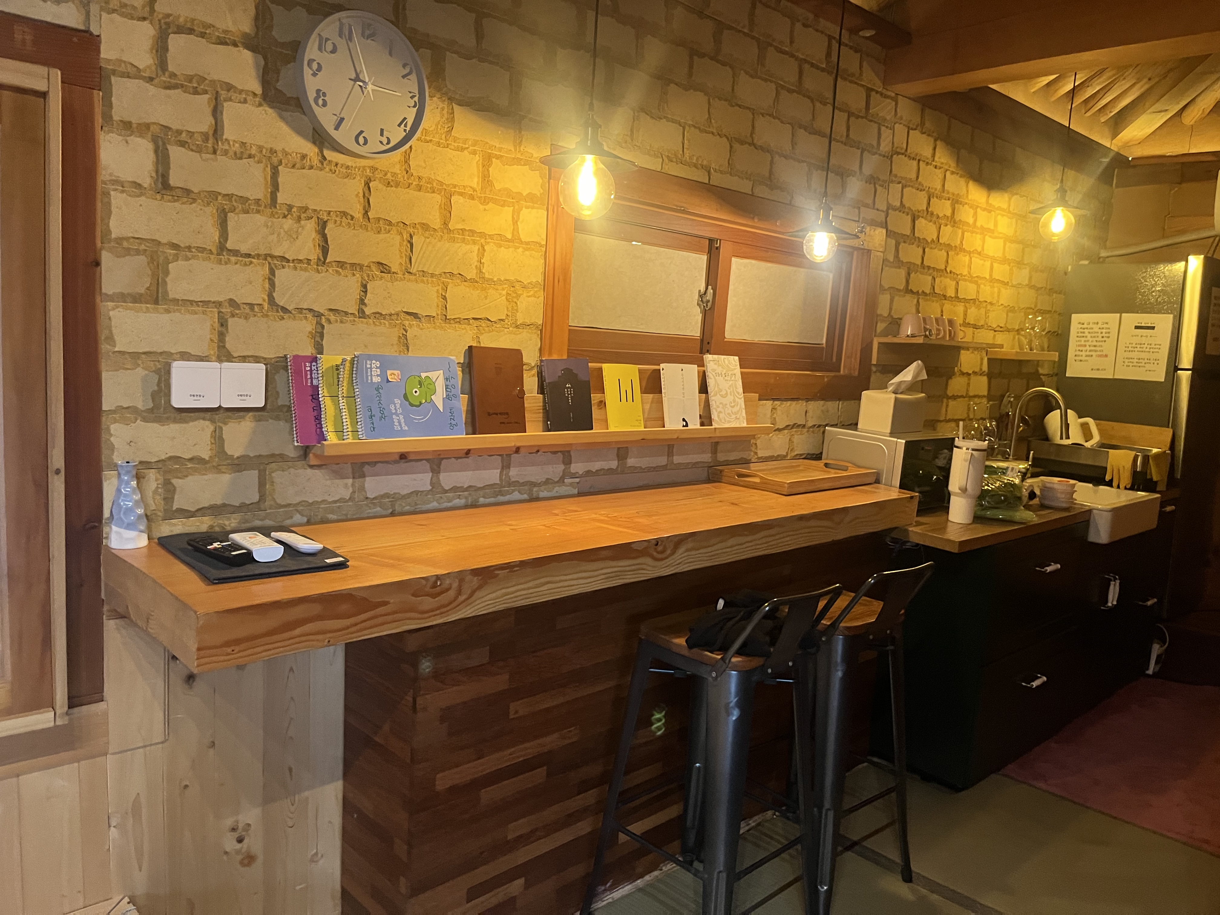 실내에 들어가면 크진 않지만 따뜻한 분위기의 방을 맞이 할 수 있습니다.