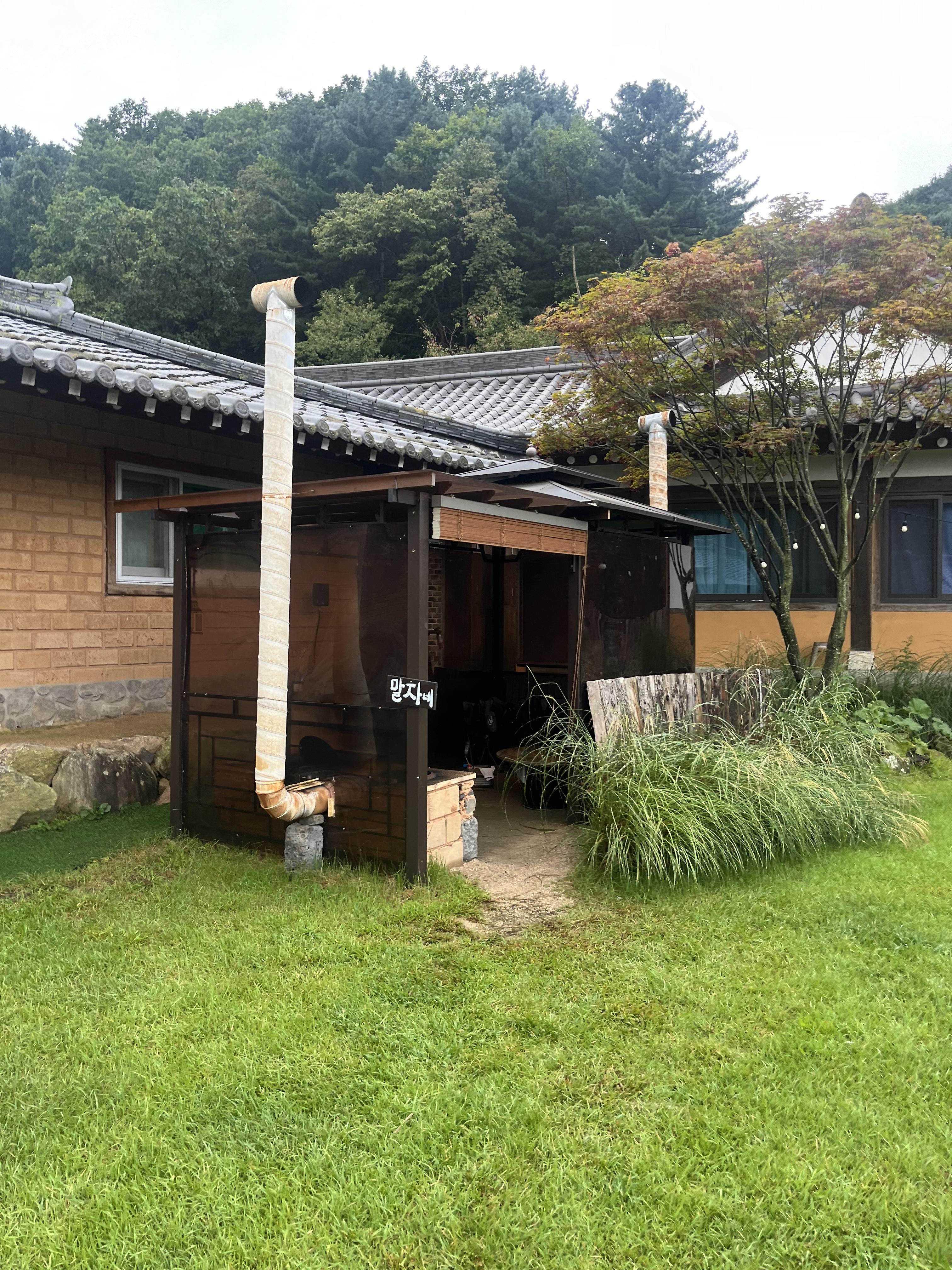 우리가 예약했던 방은 '말자네'방으로 2인기준 최대 4인까지 숙박 가능한 공간입니다. 바베큐를 진행할 공간은 숙소 바로 앞쪽에 마련되어 있는데요!